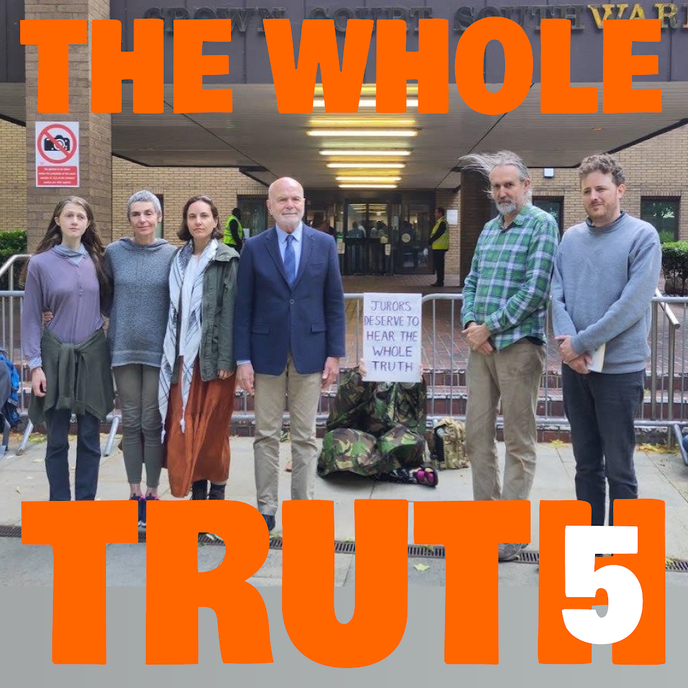 Whilst I was jailed, the judge gave my friends a pathetic 15 minutes each to defend themselves. When they also spoke of the necessity for action against mass death from carbon emissions, the judge ordered them all to be arrested. After this gagging, people began to call us the #WholeTruthFive (WTF).